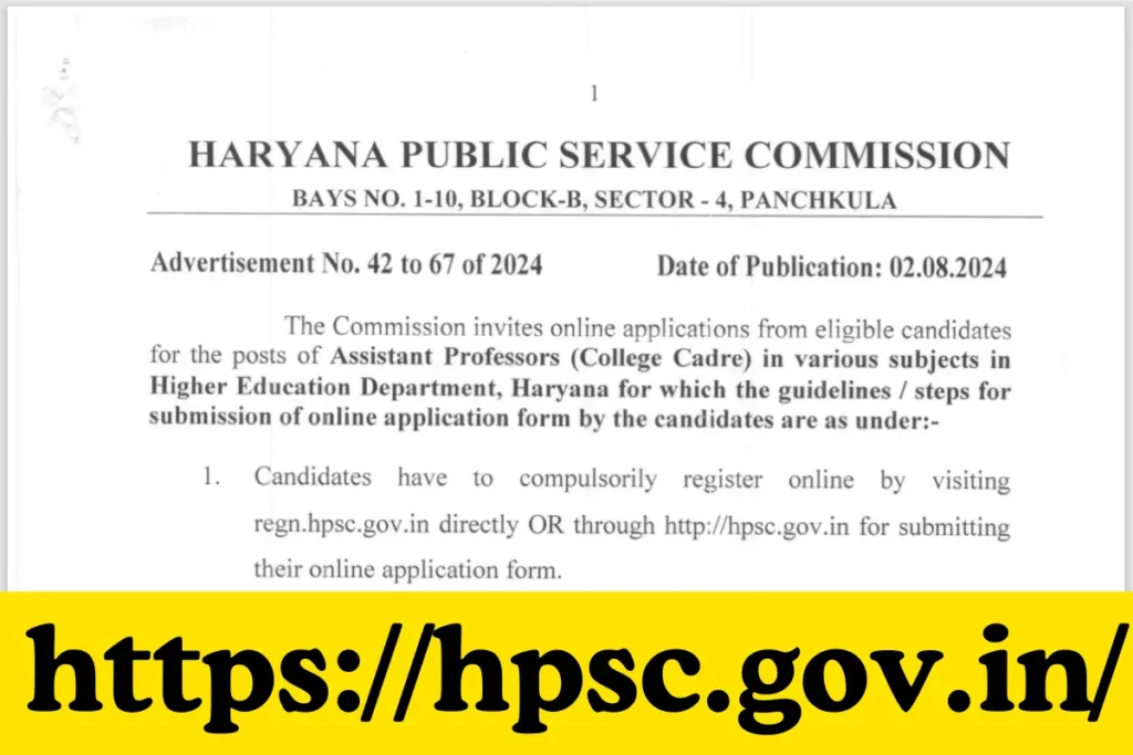 HPSC Assistant Professor Recruitment 2024 2,424 Vacancies Available – Apply Online Before August 27 at hpsc.gov.in